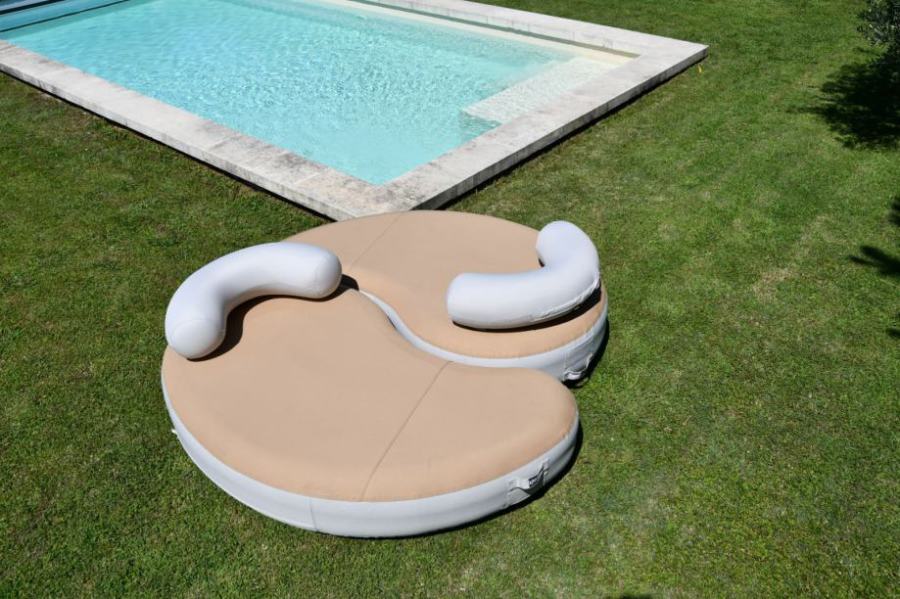 Le tissu (350 deniers) ultra résistant, traité anti-UV et lavable en machine garantit confort d'utilisation et facilité d'entretien. Dégonflés en fin de saison, il se range dans un espace