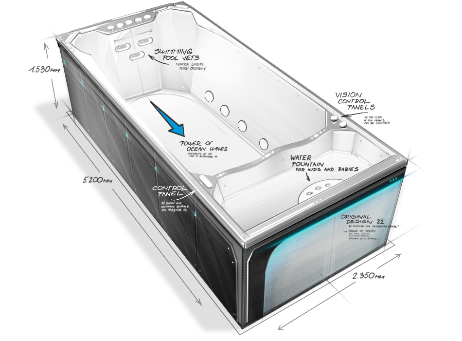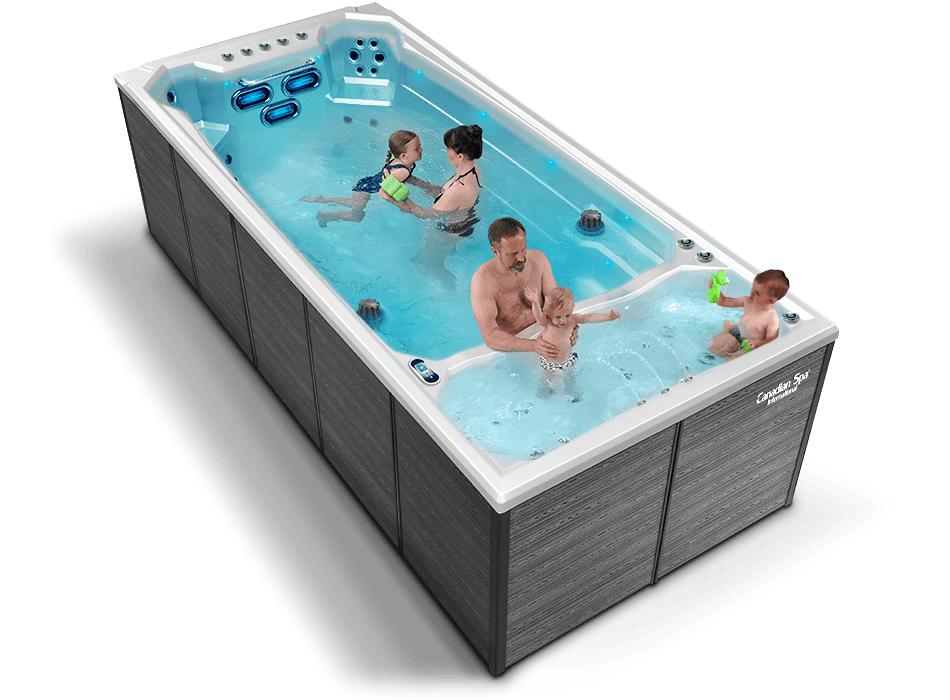Laissez-nous vous présenter une combinaison unique d’une piscine pour les plus grands et les adultes et d’une pataugeoire pour les plus jeunes. Ce modèle unique de spa de nage combine une eau plus chaude dans une partie peu profonde avec un petit bassin pour les plus jeunes, de plus il offre un espace aquatique profond et sécurisé pour les adolescents comme pour les adultes.