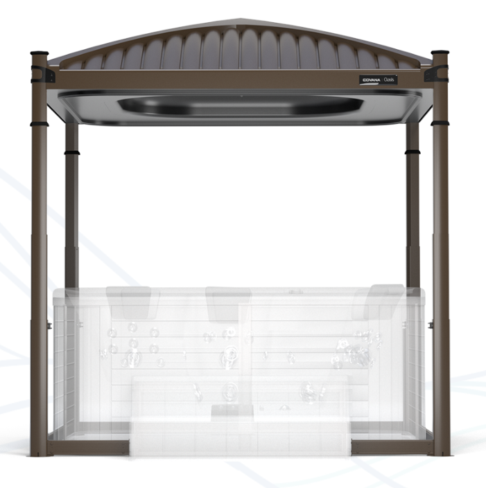 Produit phare de la gamme, le Covana Oasis rehausse votre expérience de spa en vous immergeant dans un monde de détente à part. Son toit en pente vous protège tout en limitant les accumulations, alors que son éclairage d'ambiance vous enveloppe chaleureusement dans une atmosphère aussi relaxante qu'envoûtante. Vivez des moments mémorables, à l'abri des regrads, du stress et des intempéries.